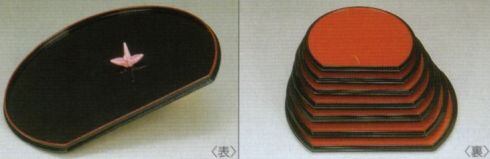 尺4両面半月盆 耐熱 <表>黒天朱 ノンスリップ<裏>朱天黒 [16664] C319-312 盆