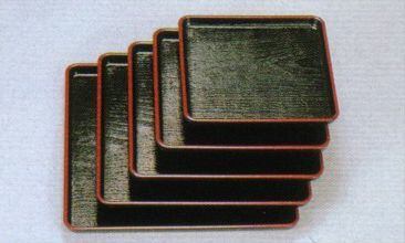 8寸正角木目地盆 黒天朱 [16679] C327-264 盆