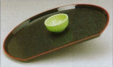 7.5寸ノンスリップ布目半月盆 黒天朱 [16738] C321-171 盆