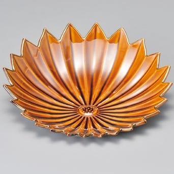 アメ釉渕金上り菊型皿[625] 45-4-057向付