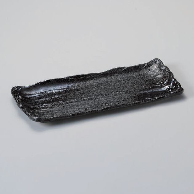 金吹黒砂荒ソギ29㎝サンマ皿[2904] 114-10-207細長皿(大・中・小)